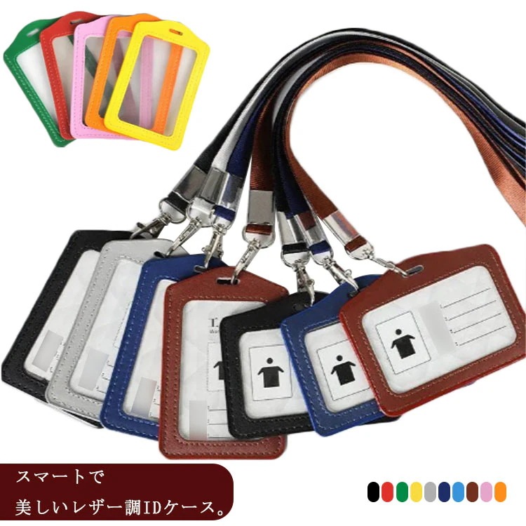 IDカードホルダー 横型 縦型 ネックストラップ付き 社員証ケース idカードケース 薄型 パスケース 定期入れ 社員証入れ IDカード入れ 合皮 PU IDカードケース ICカード入れ 名刺入れ 機