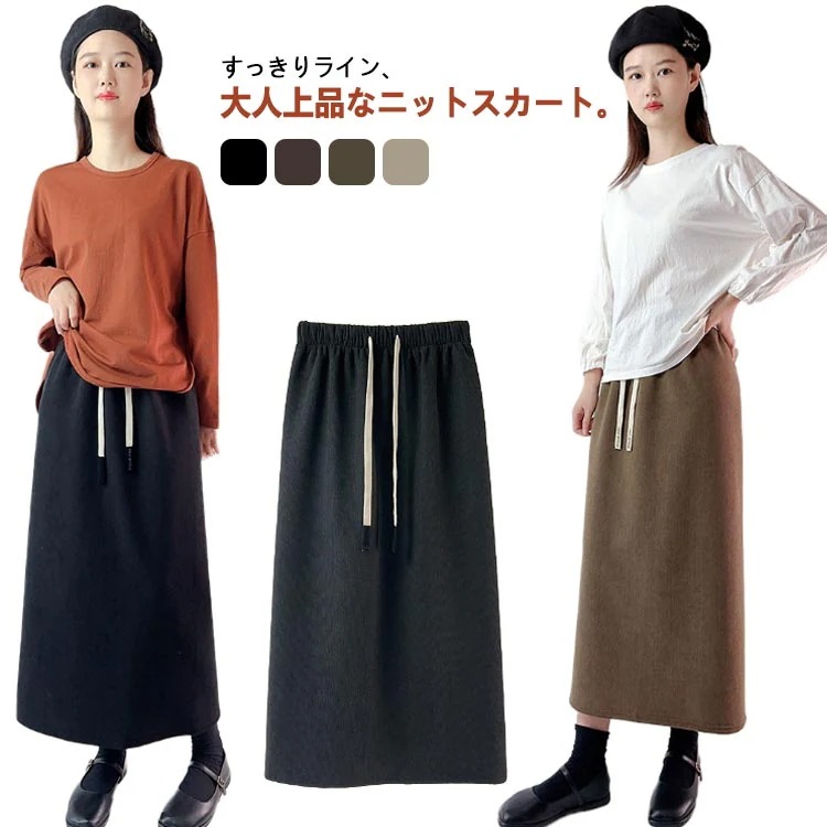 裏地毛 リブニットスカート スカート レディース 秋冬 ロング リブ Iライン スリット タイト ハイウエスト ゴム ロング丈 厚手 防寒 暖かい あったか コーデュロイ ニットスカート タイトスカー
