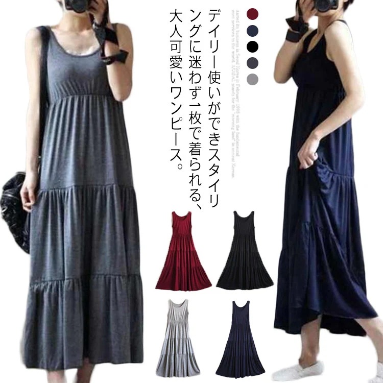 ワンピース ノースリーブ マキシ aライン 膝丈 ロングワンピース レディース 送料無料 ラウンドネック ロング丈 無地 シンプル 可愛い かわいい カジュアル オシャレ おしゃれ 夏