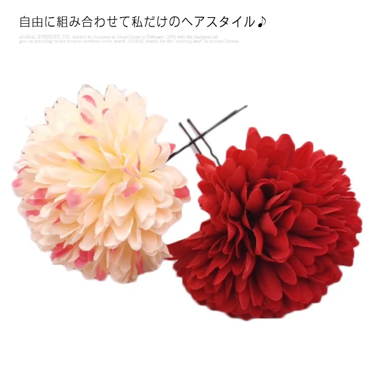 送料無料 卒業式 成人式 ピンポンマム マム 2個セット Uピン 花 菊 髪飾り 浴衣 着物 振袖 袴 七五三 結婚式 和装 髪飾り ヘアアクセサリー ウェディング 花火大会 ひな祭り
