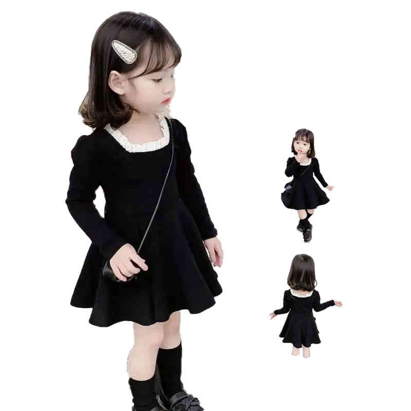 フレアワンピース キッズ フリルワンピース 春秋 ロングワンピース 子供服 ワンピース フレア ロングワンピース ミディアム丈 通気性 女の子 長袖 丸襟 Aライン 無地 シンプル カジュアル おしゃ