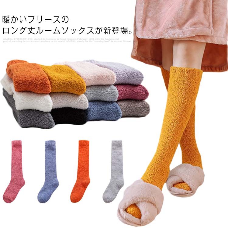 ルームソックス 靴下 2足セット もこもこ レディース フリース あったか ロング丈 暖かい ハイソックス 裏起毛 ボア ふわふわ 冬 春秋 コットン 無地 かわいい メンズ プレゼント 送料無料