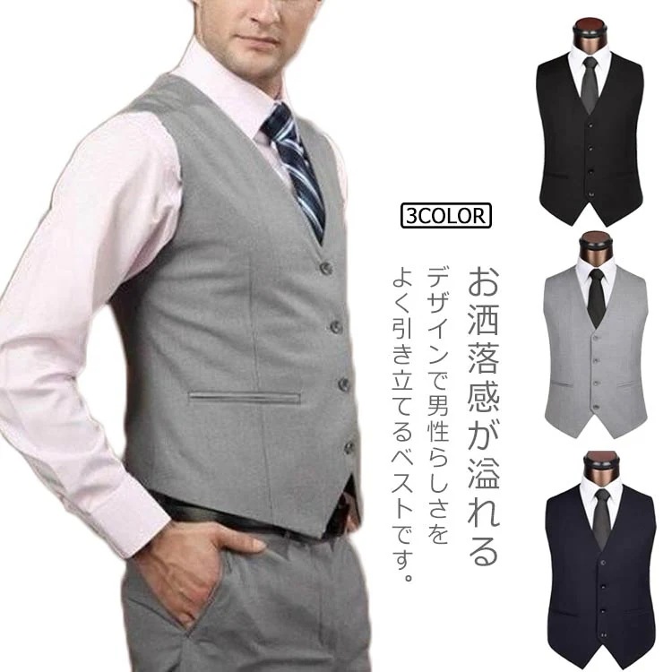 スーツベスト ジレ フォーマル トップス スリム ベスト メンズ ビジネス カジュアル 結婚式 紳士服 春秋 大きいサイス 尾錠付き 普段着 無地