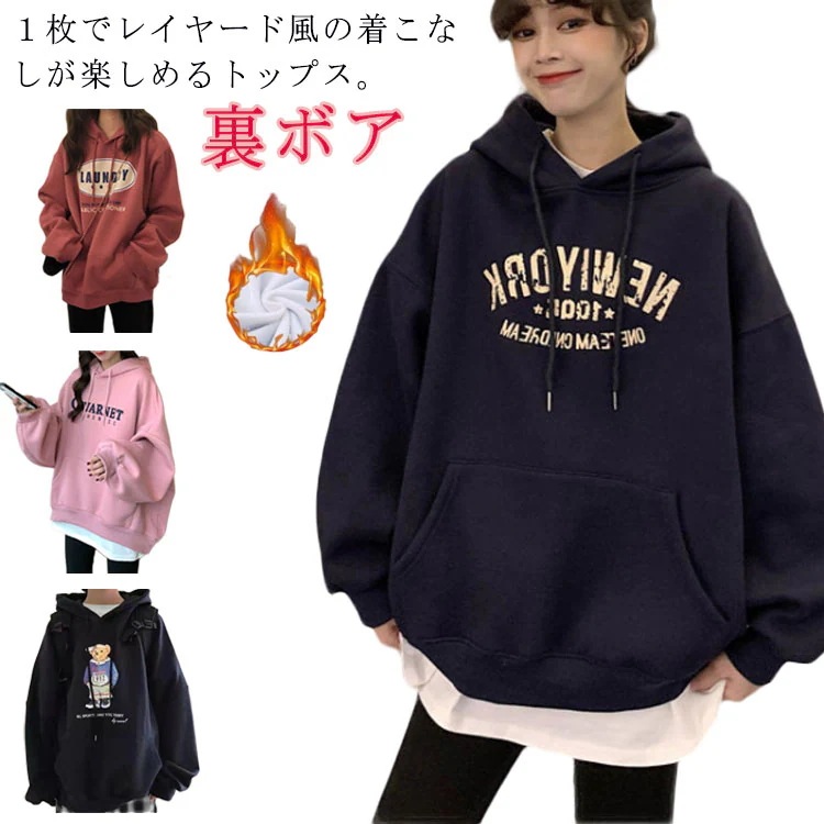 送料無料 裏起毛 トップス スウェット パーカー トレーナー レディース カジュアル ガーリー プルオーバー 冬 春 あったか ビッグシルエット 裏ボア ボア あったか おしゃれ