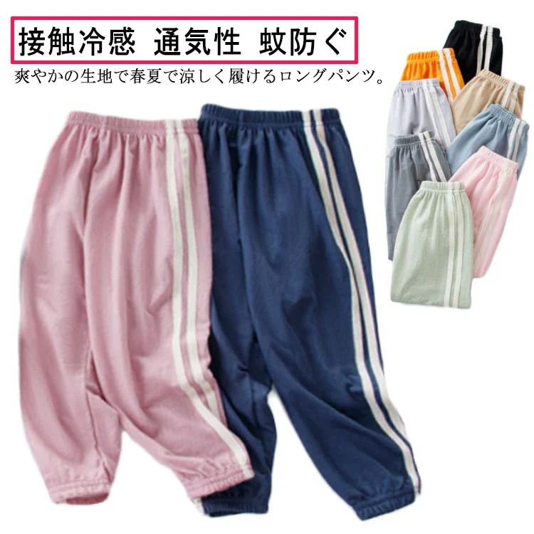 キッズ パンツ 夏 接触冷感 通気性 子供服 男の子 女の子 ズボン 虫除け 涼感 涼しい 2本ライン ロングパンツ サルエルパンツ 蚊防ぐ スウェット カジュアル ルームウェア 通園 通学 ベビー