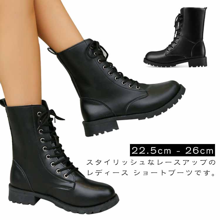 ブーツ レディース 靴 シューズ ブーティ ワークブーツ レースアップ サイドゴア ブラック 黒 靴 ローヒール 太ヒール ショートブーツ ショート カジュアル 厚底 秋冬 ブラック 防寒 卒業式