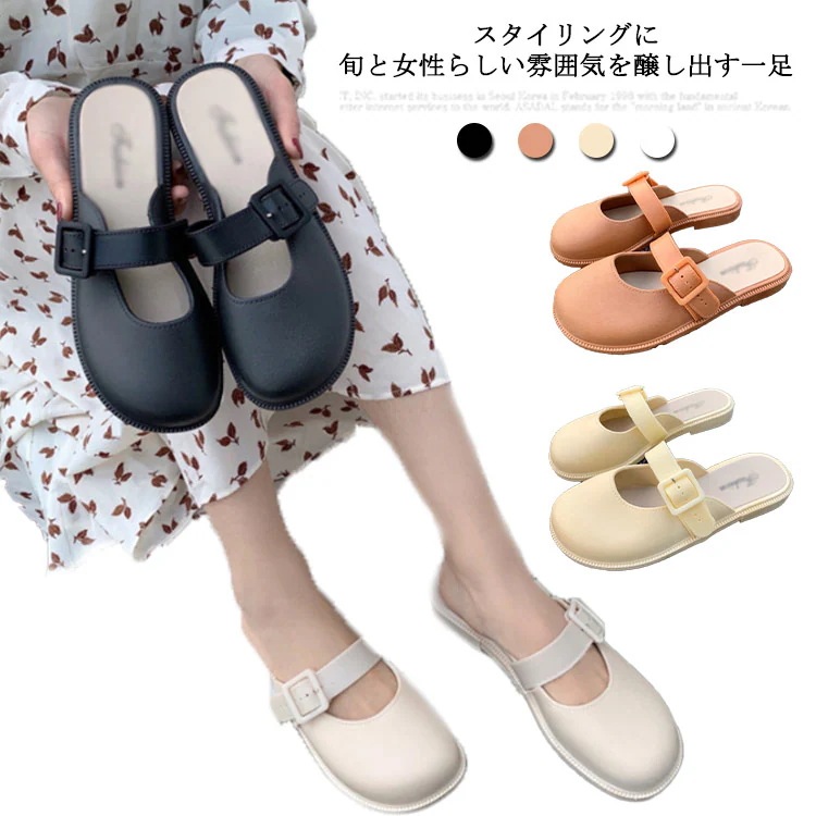 ミュール サンダル 痛くない 歩きやすい レディース パンプス ぺたんこ フラット ローヒール おしゃれ 大人カジュアル 春夏 ブラック ベージュ 美脚 オフィス 通勤 お出かけ シューズ 靴 スリッ