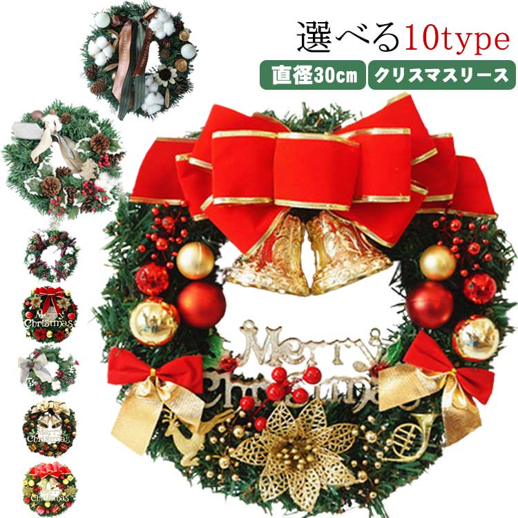 クリスマスリース 30cm 玄関 北欧 おしゃれ ナチュラル コンパクト ドア クリスマス リース クリスマスプレゼント ギフト 店舗 装飾 ディスプレイ ウェルカム ドライリース 選べる10種類 天