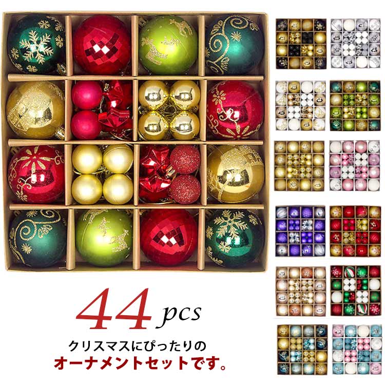 クリスマス オーナメント ボール クリスマスボール 華やか 北欧風 44個セット クリスマスツリー 飾り付け ボールセット デコレーション 装飾 インテリア 部屋 喫茶店 店舗 イベント パーティー
