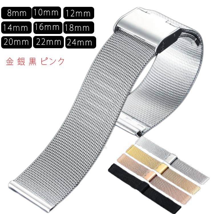 ステンレス 腕時計バンド 時計バンド ウォッチベルト 8mm 10mm 12mm 14mm 16mm 18mm 20mm 22mm 24mm 腕時計バンド スマート時計バンド メンズ レディース