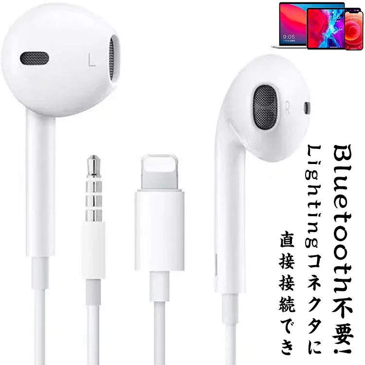 直接接続! iPhone アップル イヤホン 有線 Lightning Apple 有線イヤホン 純正 音量調節 マイク付き リモコン付き iPhone 12mini 12 12Pro 11P 11P