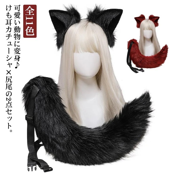 キツネ コスプレ 耳尻尾 2点セット コスプレ 衣装 ハロウィン 仮装 きつねみみ 狐 狼 耳 しっぽ 変装 文化祭 イベント けもみみしっぽセット 動物