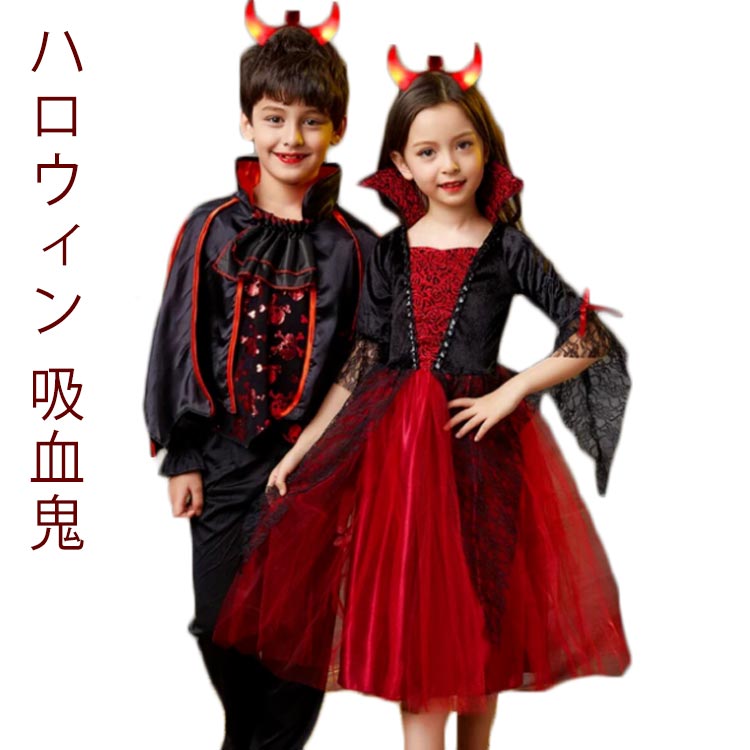 ハロウィン 衣装 子供コスプレ コスチューム衣装 ロングドレス ワンピース バンパイア ケープ風 花嫁 ゾンビ 吸血鬼 魔女 悪魔衣装 ヴァンパイア 女の子 男の子 髑髏 仮装 学園祭 パーティー服