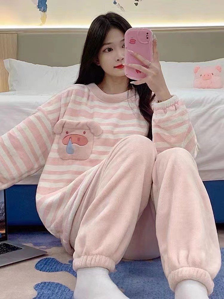 パジャマ2024秋冬新作パジャマ女性冬サンゴベルベットスーツ パジャマ 韓国