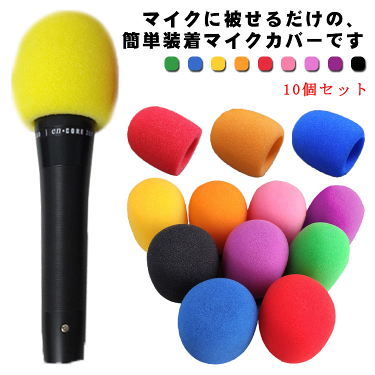 マイクヘッド 10個セット 交換用 マイク 風防 カラオケマイク マイクカバー マイクスポンジ ハウリング防止 スポンジ カラフル 雑音防止 洗えるカバー 結婚式場 講義 司会 送料