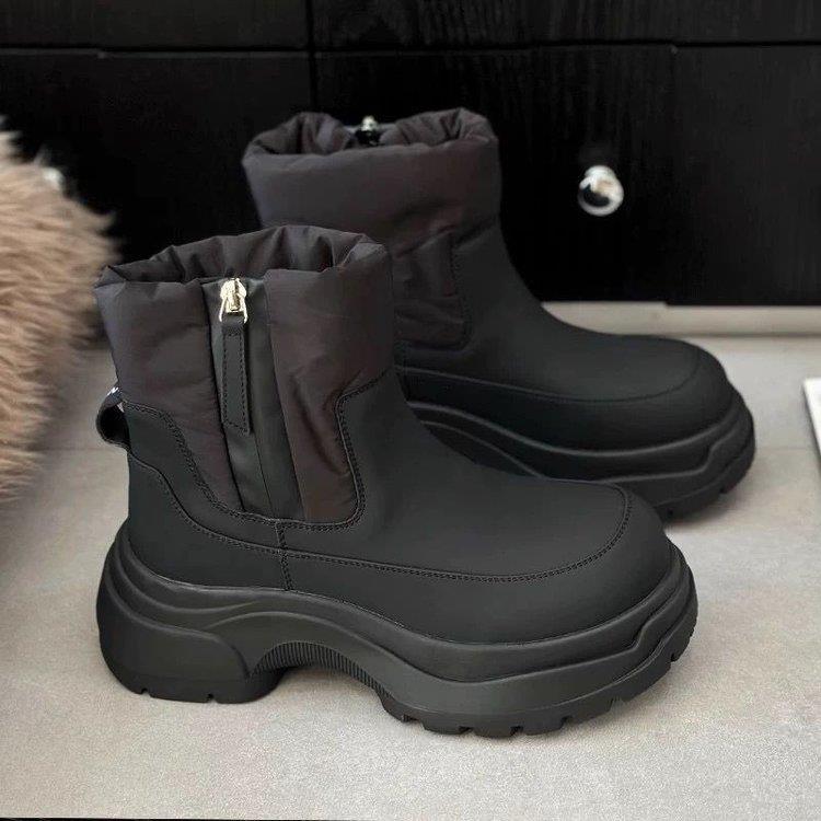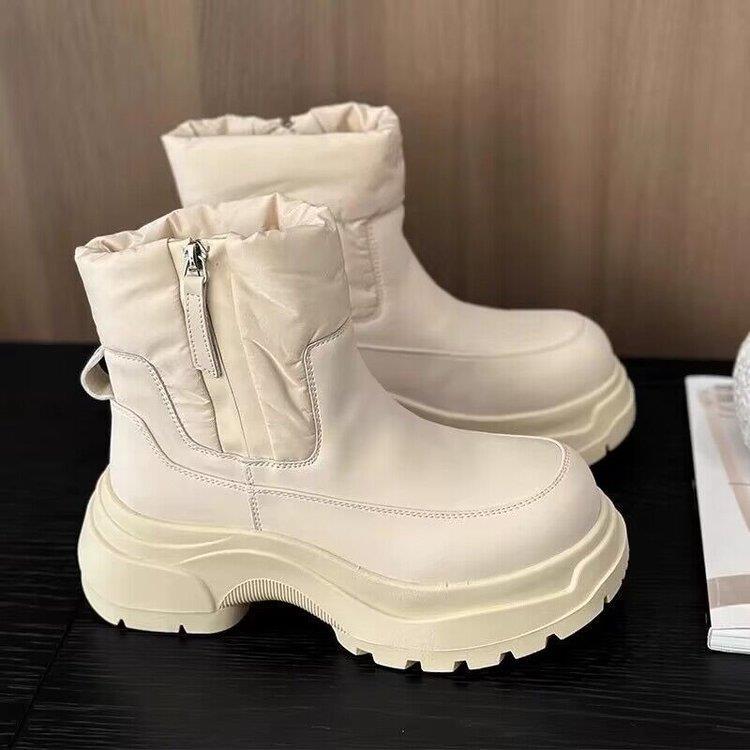 韓国ファッション ショートブーツ ダウン厚底スノーブーツ女性2024新型冬マーチンショートブーツ防水滑り止め保温百合パン綿靴
