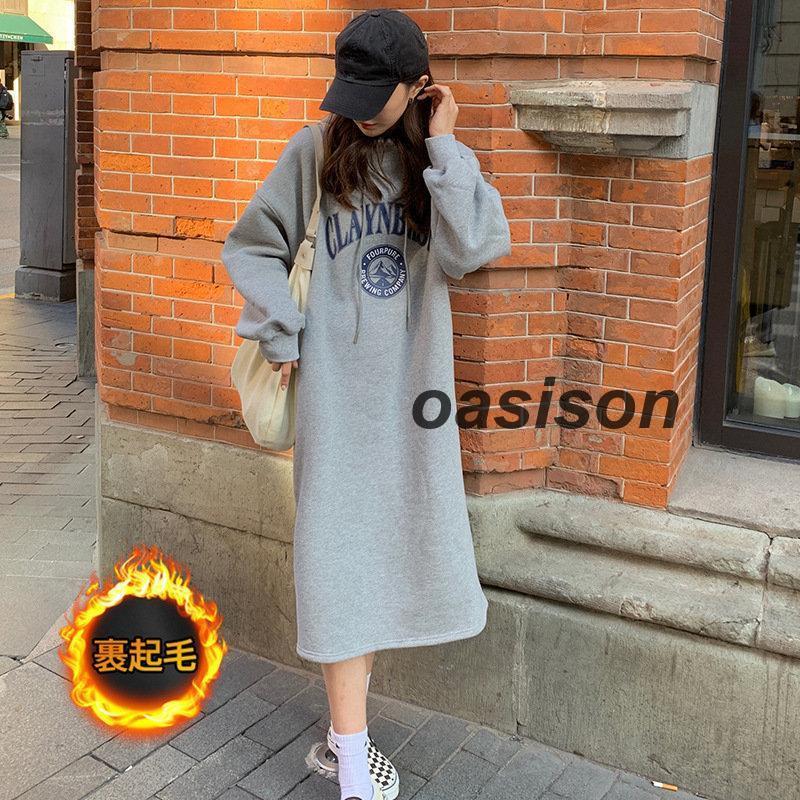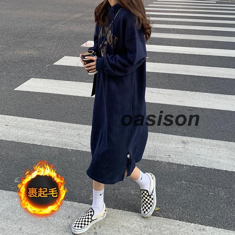 新品 大人気 裏起毛 ワンピース Aライン パーカーワンピース レディース 秋冬 長袖 暖かい 極暖 あったか ビッグシルエット ゆったり ロング丈 サイド 綿混