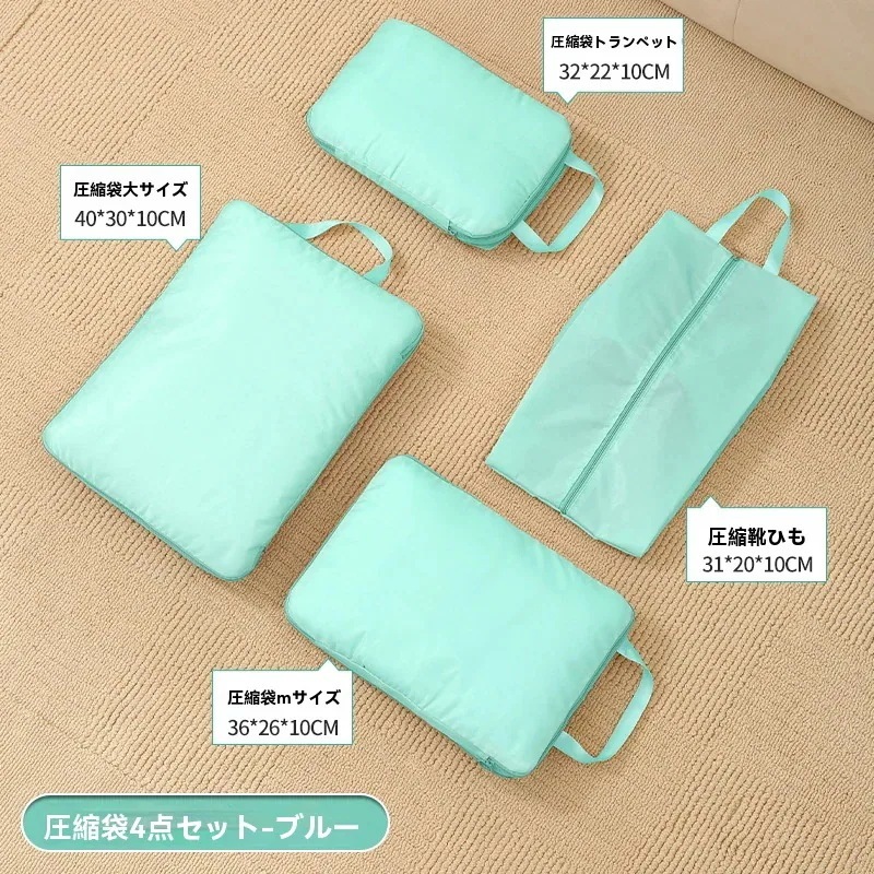 トラベルポーチ7点セット 圧縮 ポーチ バッグ トラベル 押すだけ 旅行用 服 旅行 ファスナー 圧縮袋 セット 繰り返し使える おしゃれ レディース トラベルバッグ 大 大きい 着替え 可愛