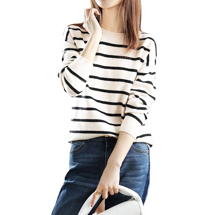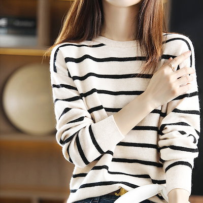 トップス ニット クルーネック ボーダー レディース カットソー 秋冬 着痩せ きれいめ 履きやすい 生地 おしゃれ セーター 長袖 リブニット ゆったり 大人 女性 通勤 通学 オフィス