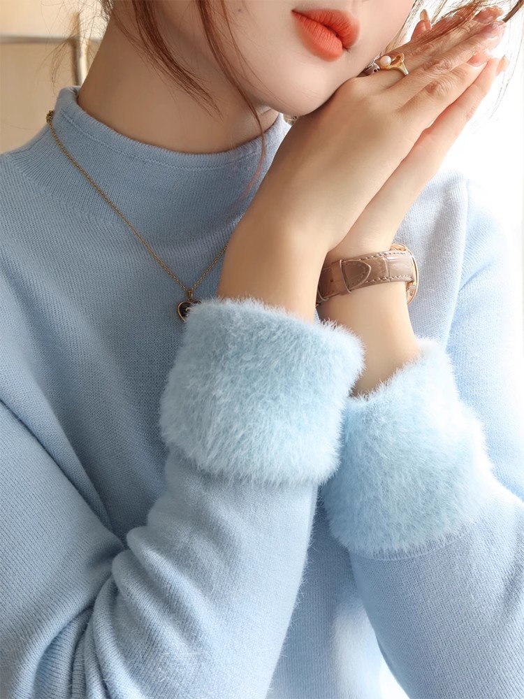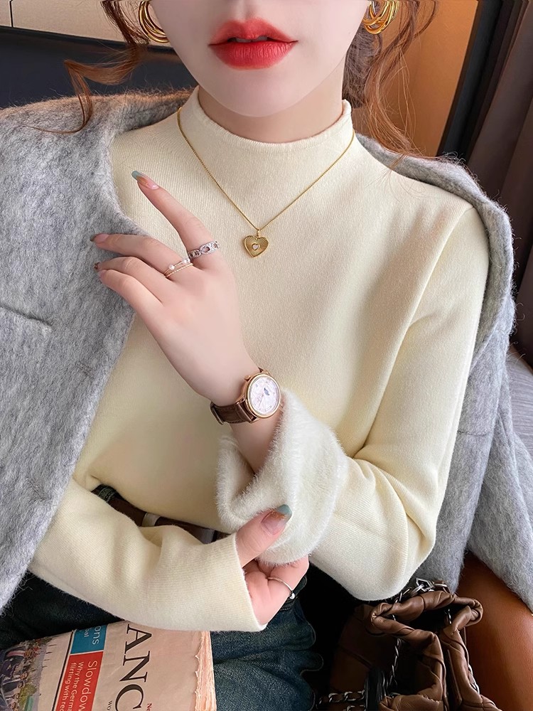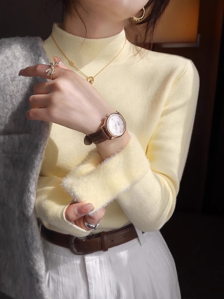 裏起毛5COLOR ニットセーター保温 暖かい 上質 リブ ニット トップス レディース タイト シルエット ストレッチ カットソー 無地 秋冬 トップ