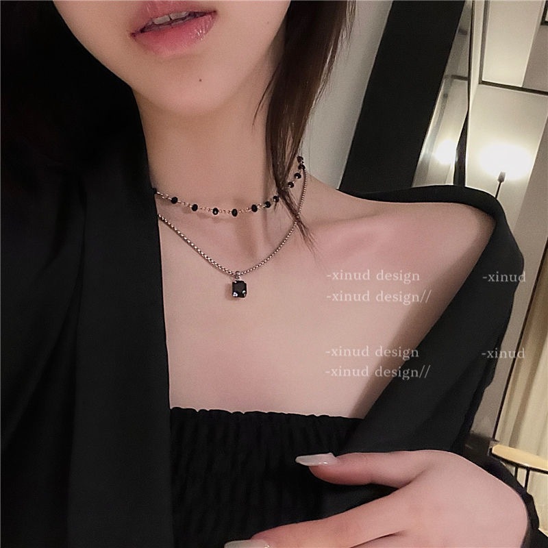 両層重ね付け czダイモンドネックレス 鎖骨チェーン シンプル ネックチェーン ファッション 気質