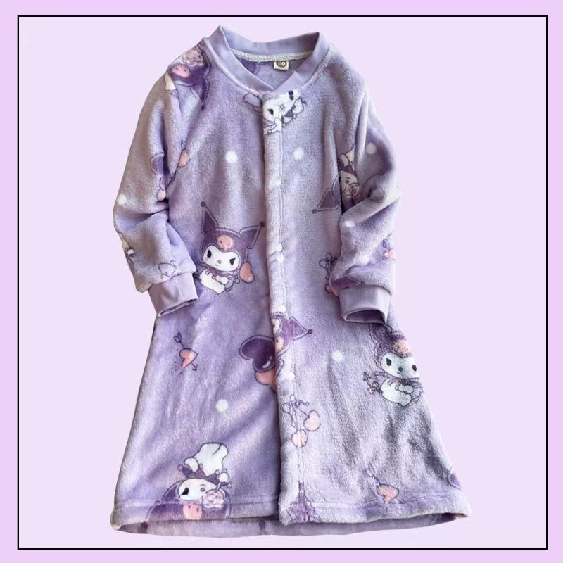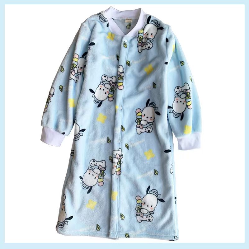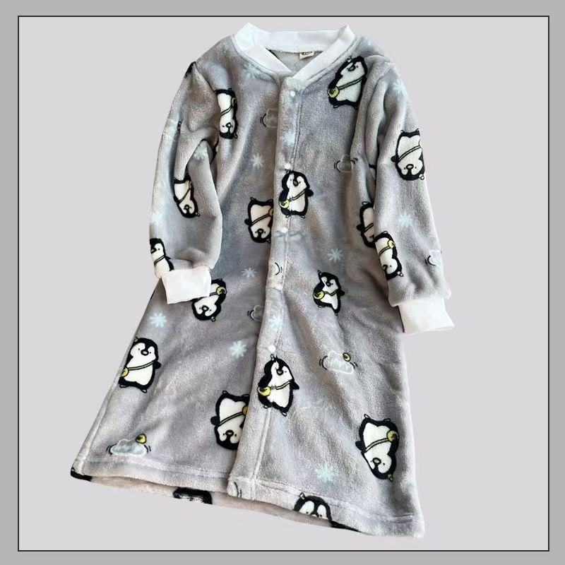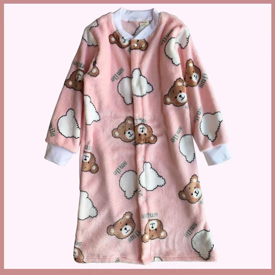 子供用ドレッシングガウンメンズとレディースのナイトウェア秋と冬ダブルプルイスパッド入りの暖かいコーラルベルベットのバスローブフランネルラウンジウェア