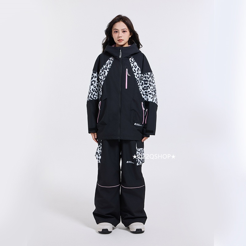 スノボウェア 2024 2025 上下セット メンズ レディース アウター ジャケット パンツ ズボン ヒョウ柄 ウィンタースポーツ スノーボードウェア スキーウェア スノーウェア 防水防寒 韓国風