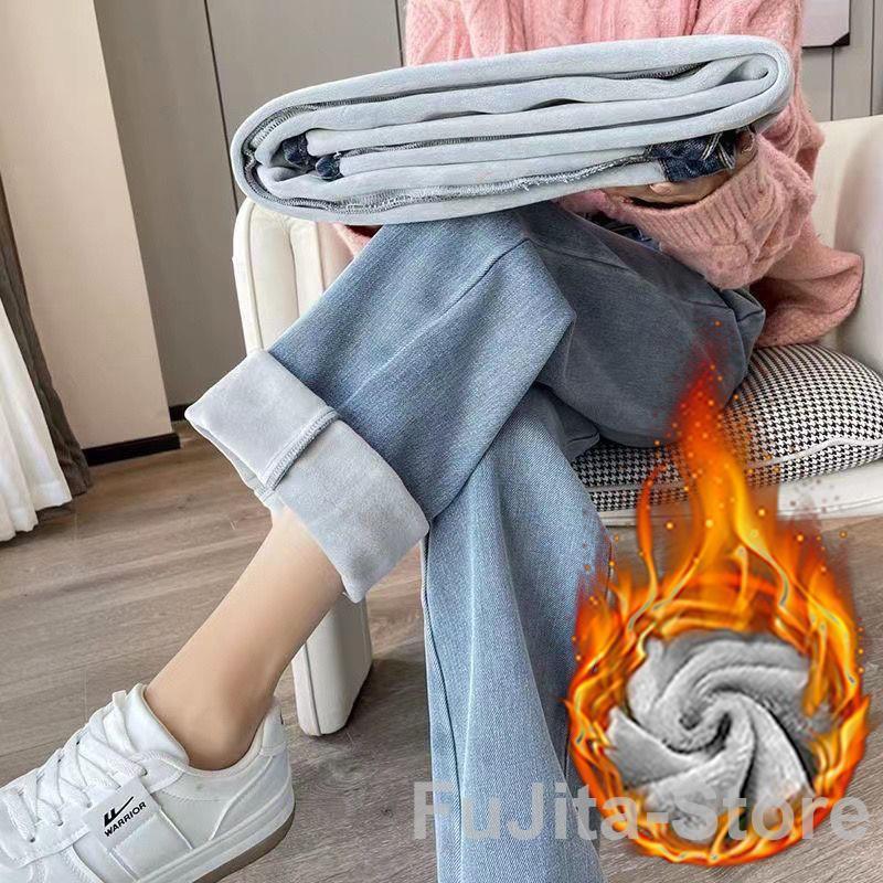 デニムパンツ レディース 裏起毛 ワイドパンツ ジーンズ カジュアル 防風 防寒 あったか 裏ボア 無地 着痩せ 着回し ゆったり シンプル 落ち感