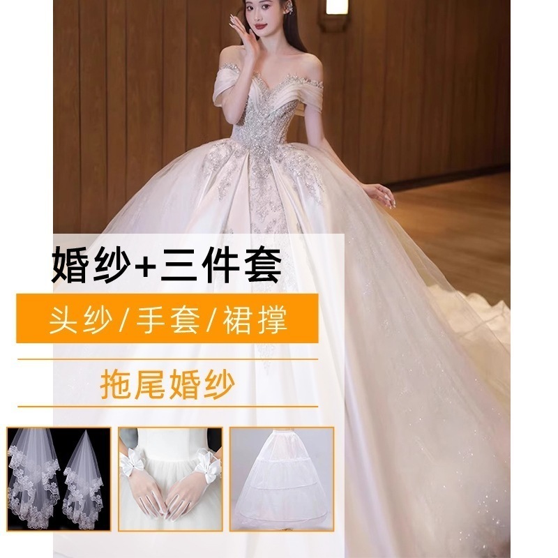 サテン ウェディング ドレス 2025 花嫁 ワンショルダー プリンセス ウェディング メイン糸 重工業 リトルマン