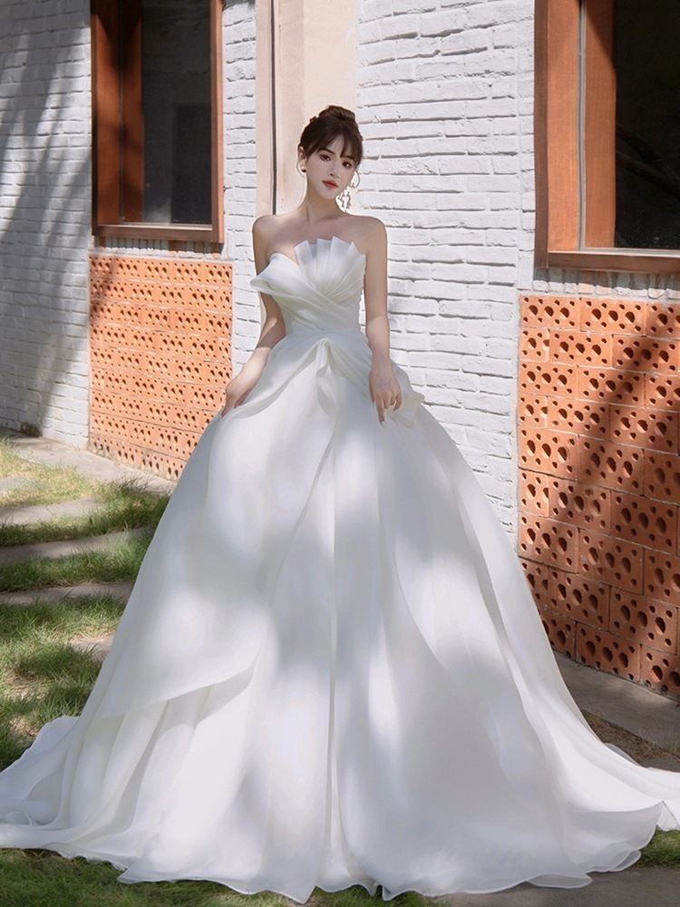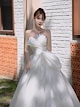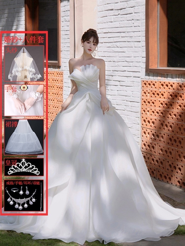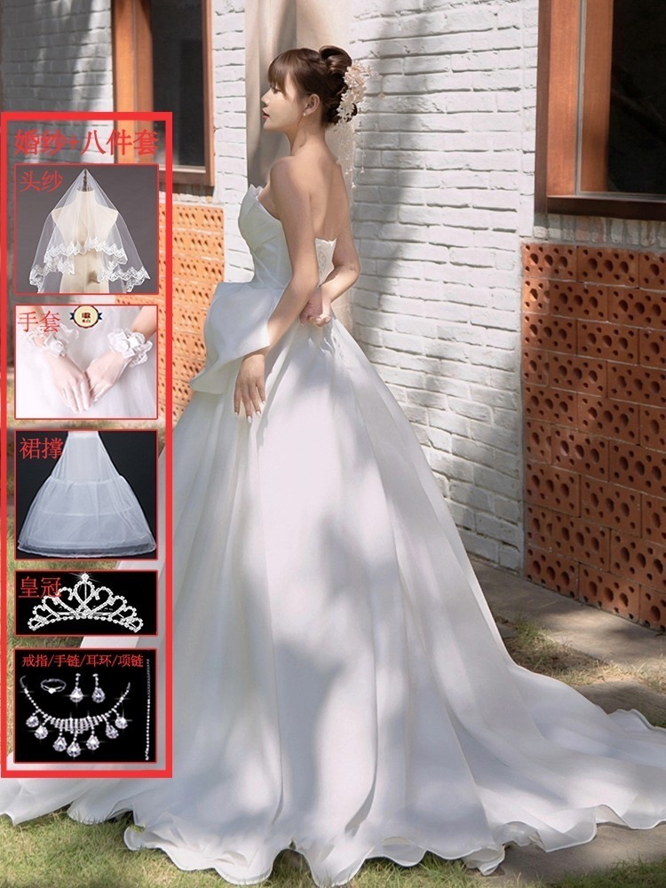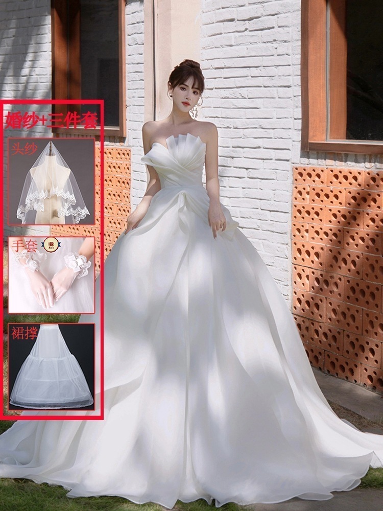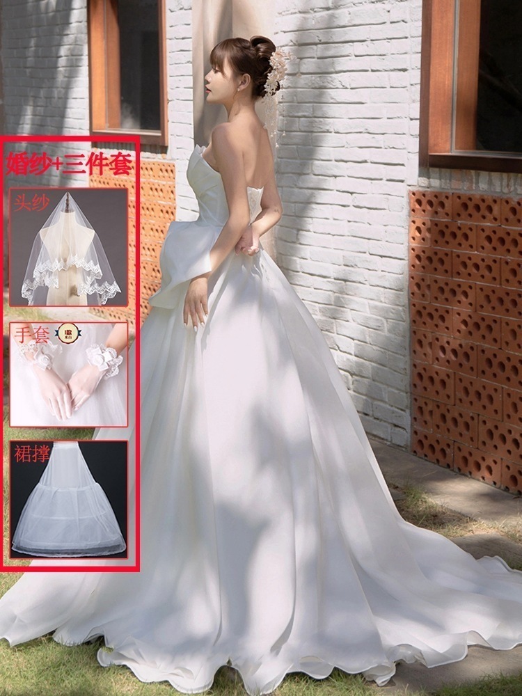 ライトウェディングドレス2025新しいスタイル花嫁スモールシンフロアレングスブベールウィンタートレーリング