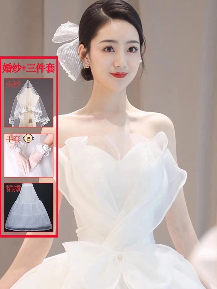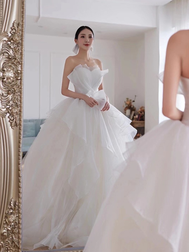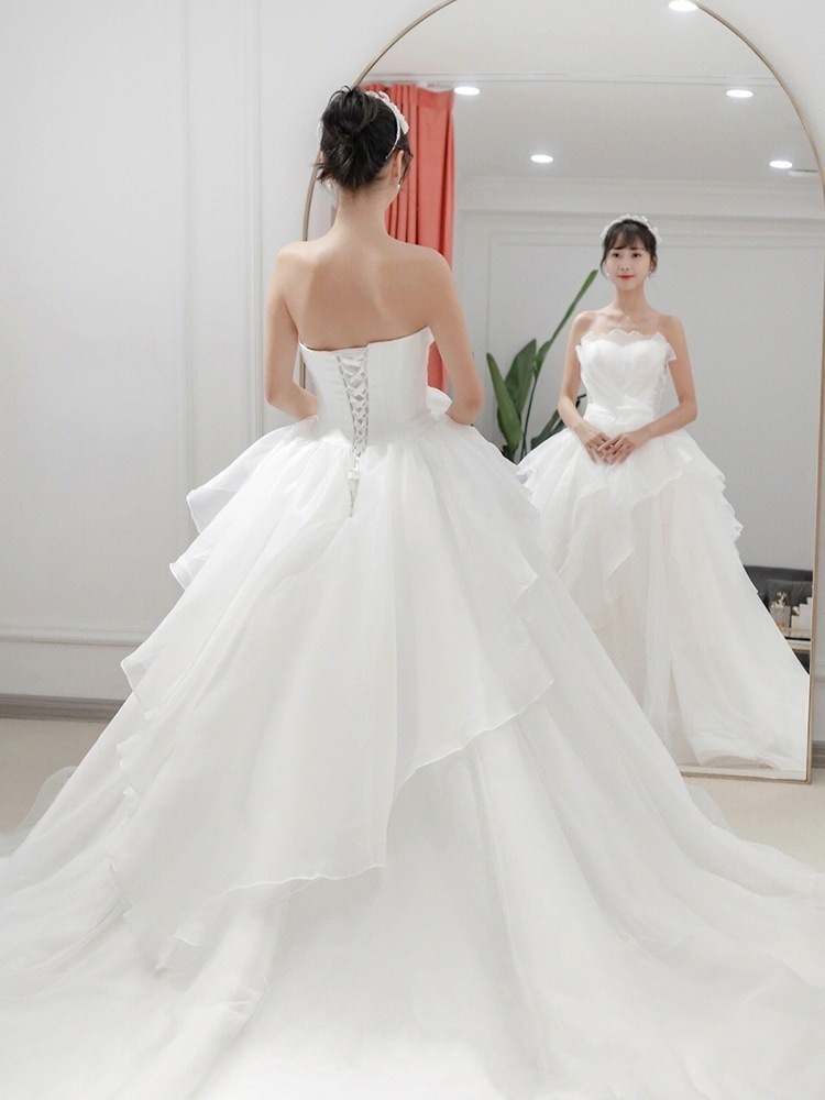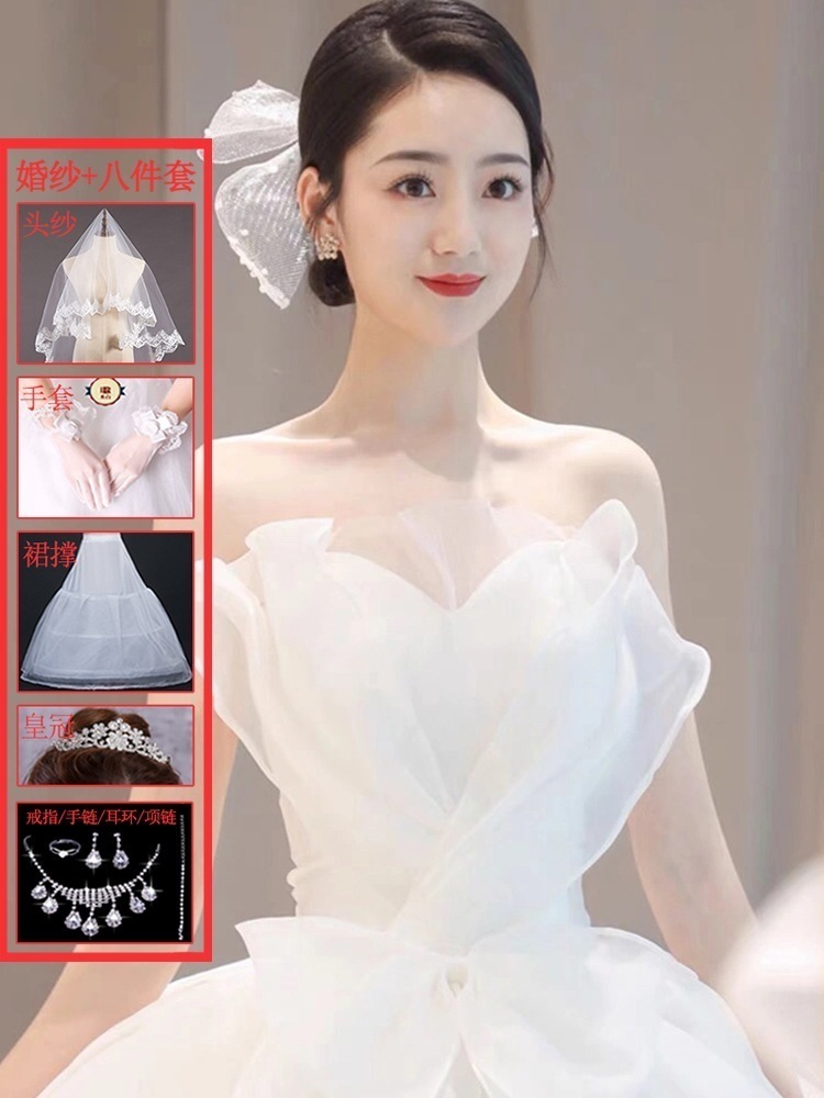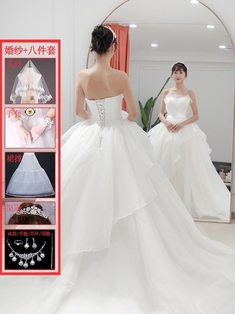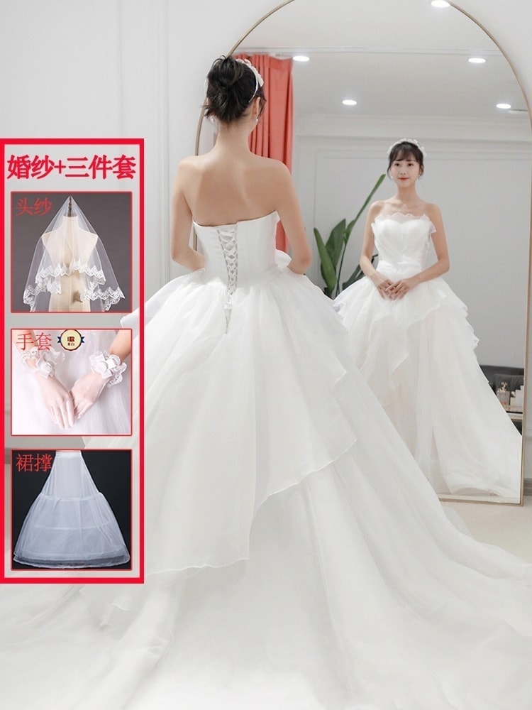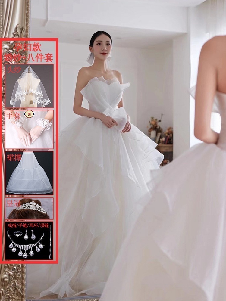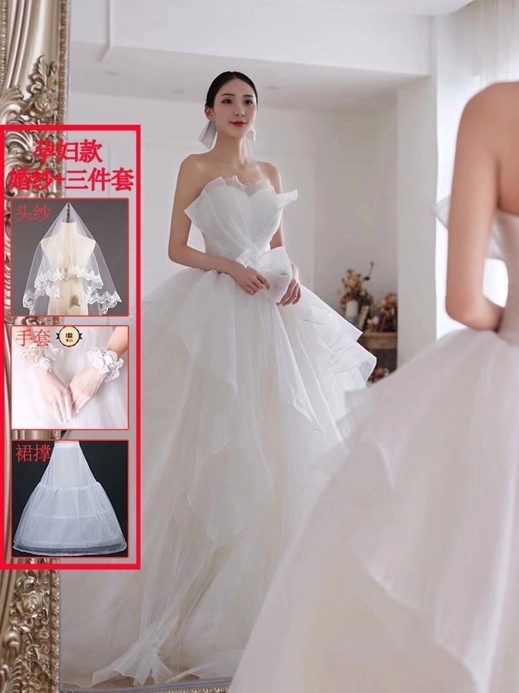 メインウェディングドレス 2025 新作花嫁 スモール ブ ドア ベール ライト 上質 質感 トレーリング 妊婦