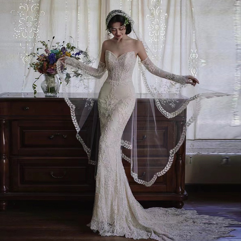 レーステールライトウェディングドレス花嫁2025メインヤーンレトロリトルマンゲストをお迎えに出かけるヤーンスモールドレス
