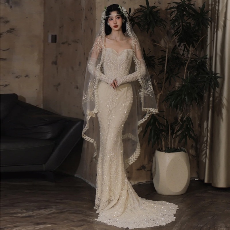 レース テール ライト ウェディングドレス 花嫁 2025 メインヤーン 花嫁をお迎えするお出かけ感 スモールドレス