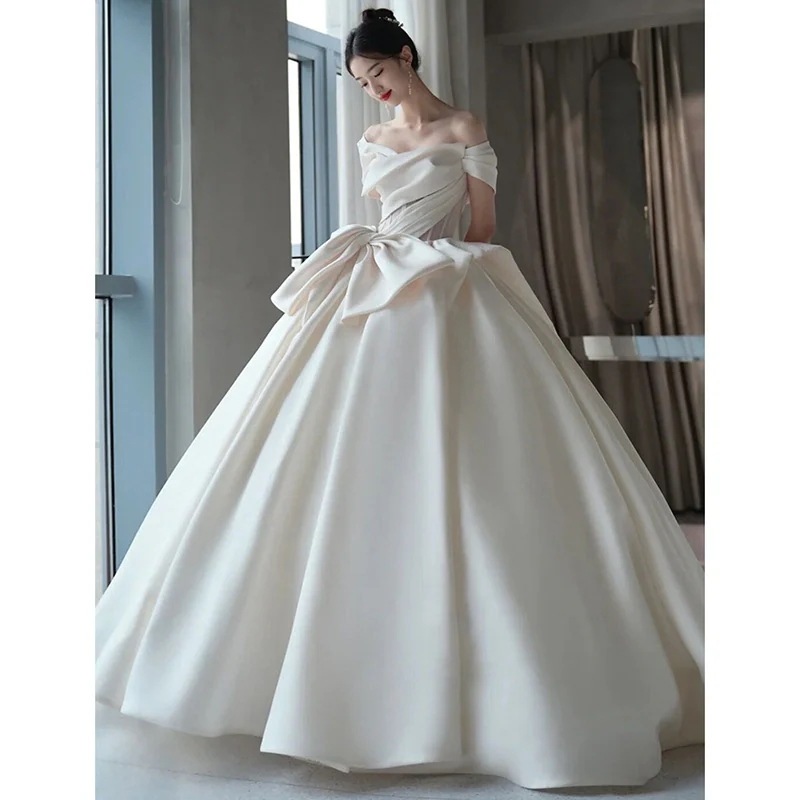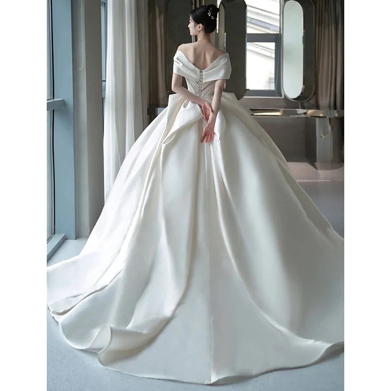 ワンショルダー サテン ウェディングドレス 2025 新作 ブライダル メインヤーン ドレス 重工業 ラージテール