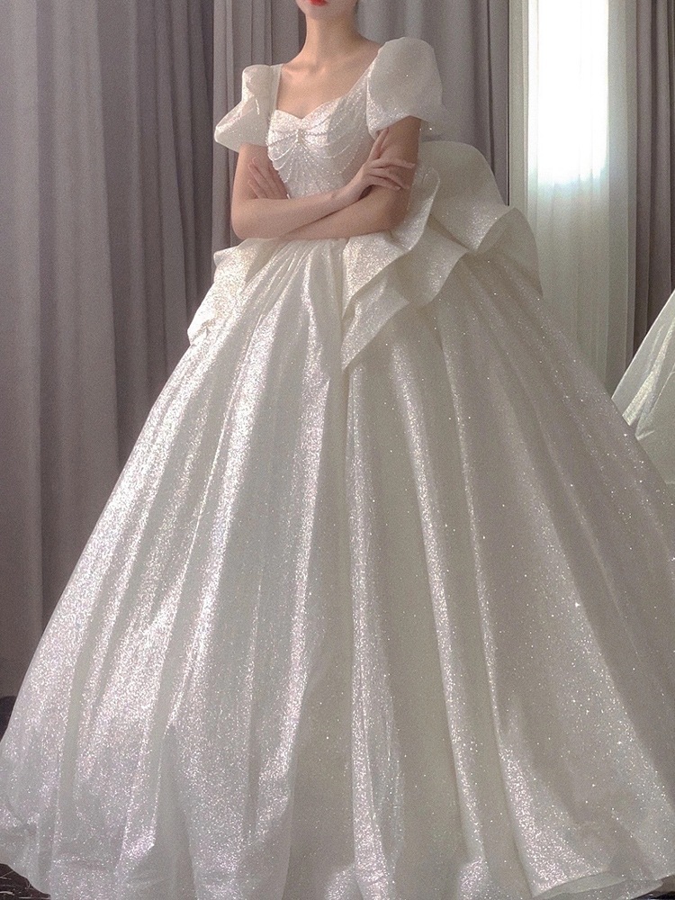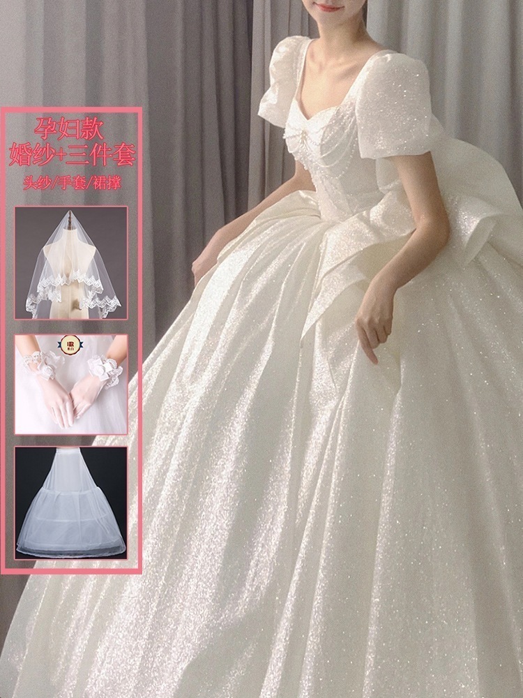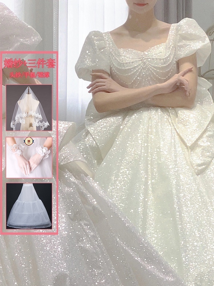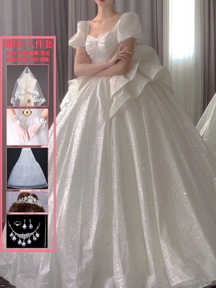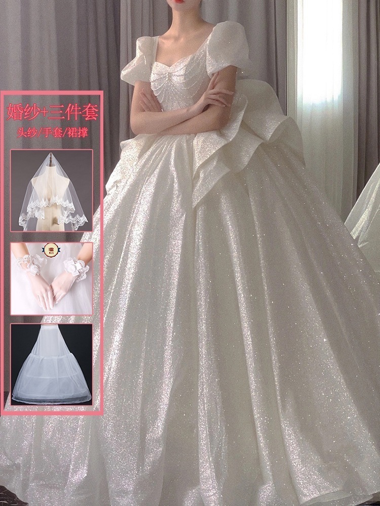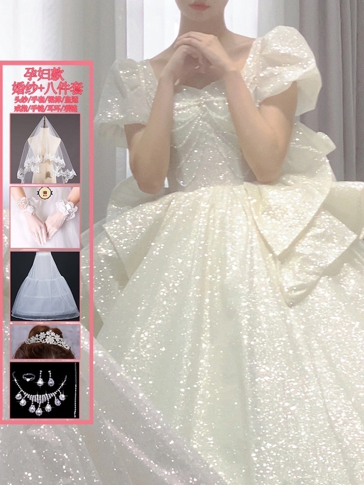 軽やかなウェディングドレス 2025 新作 花嫁のメインベール 女性 小さめ 妊婦 上質 質感 大 星空をなぞる
