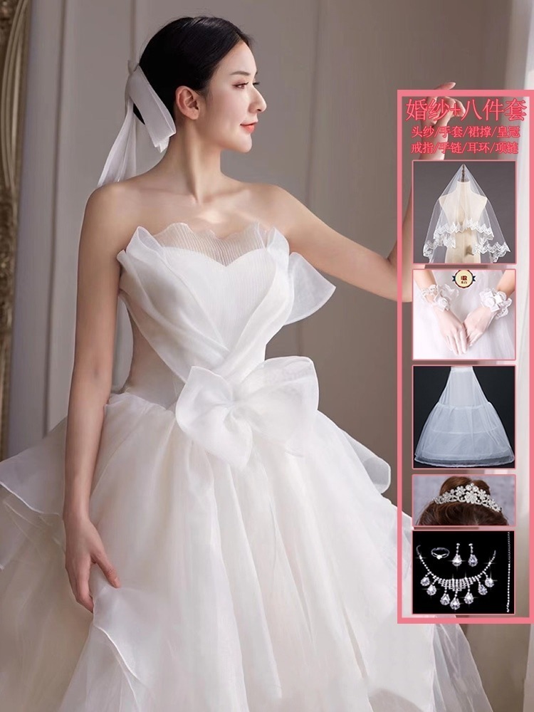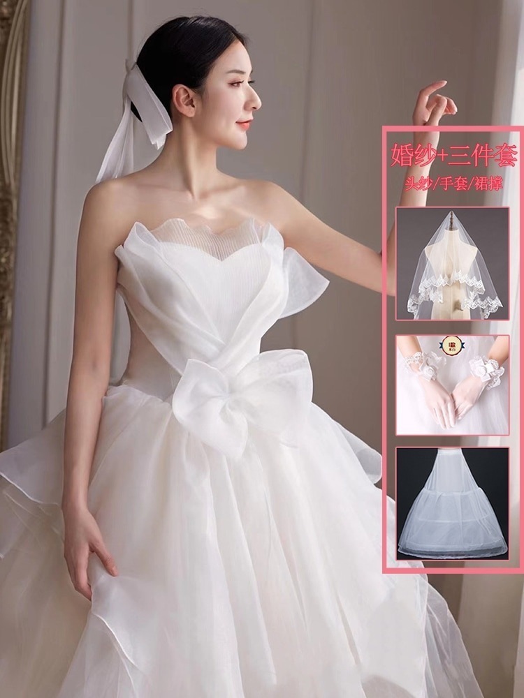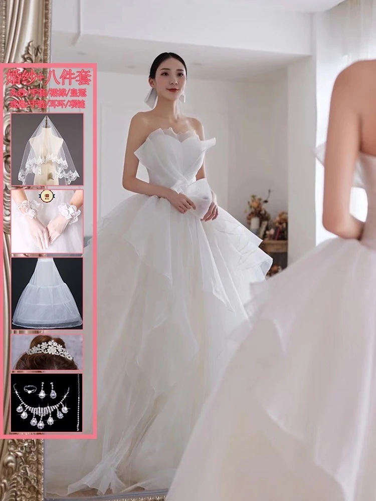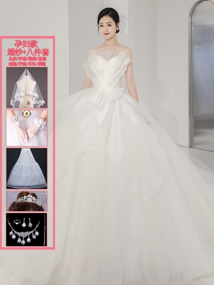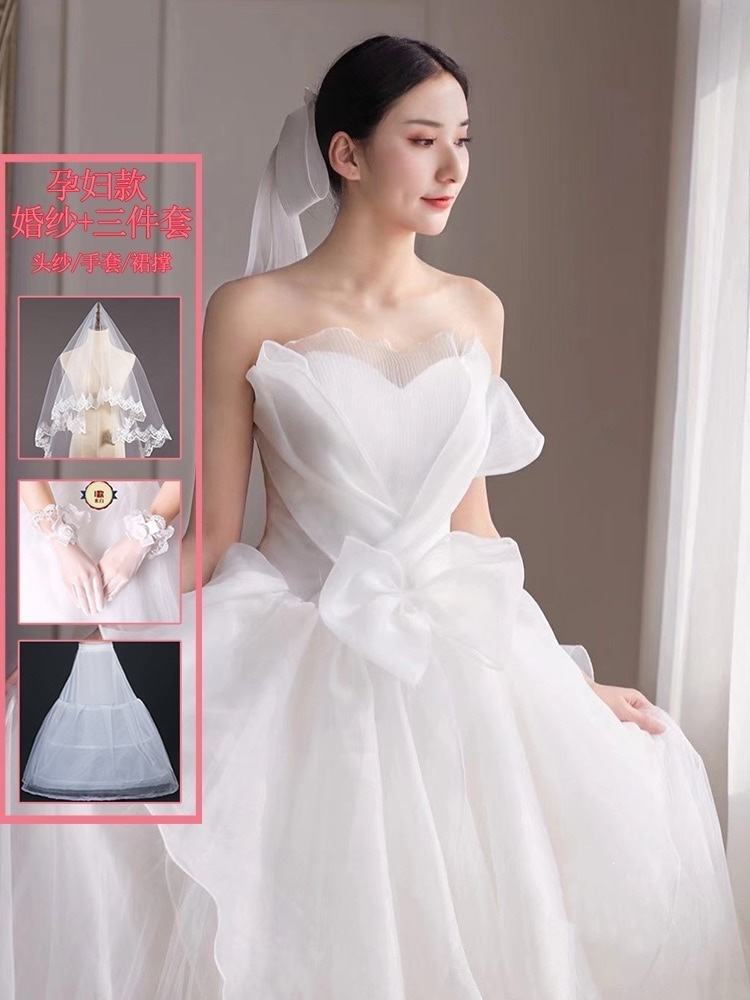 ブ メインライト ウェディングドレス 2025 花嫁 妊婦 パレス風 シン お嬢様 お出かけ ベール 冬