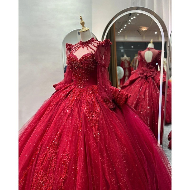 赤いウェディングドレス 2025 ブライダルメインヤーン重工業長袖レトロハイエンドテクスチャ冬