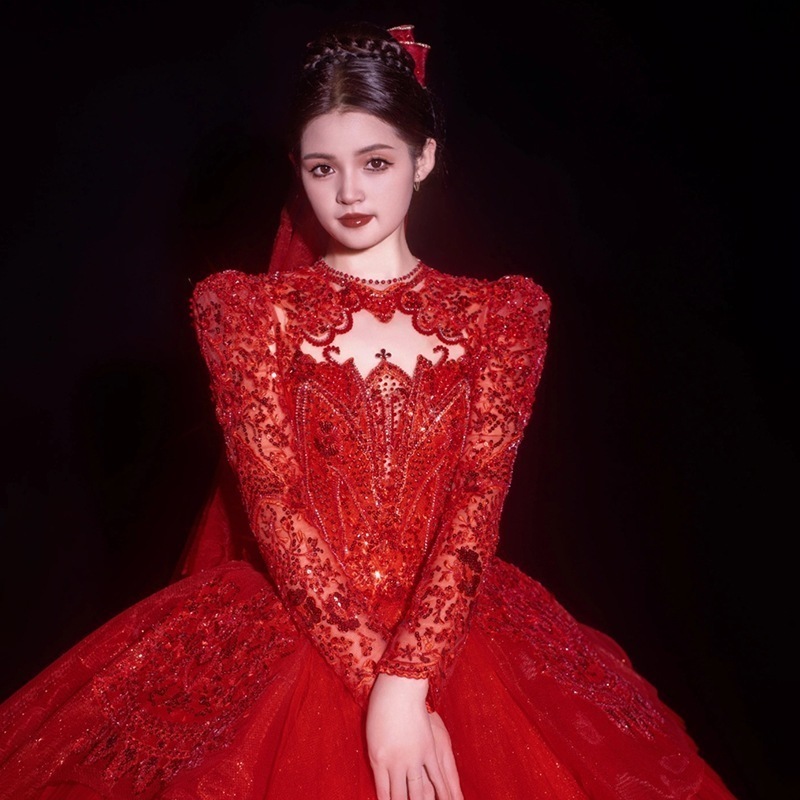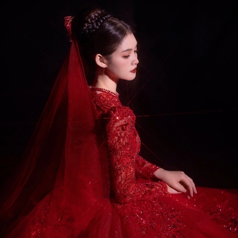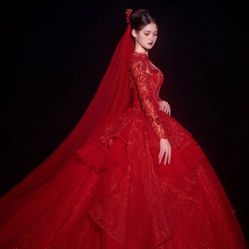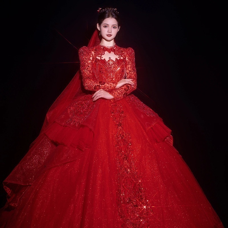 レッドメインウェディングドレス花嫁2025小さめ妊婦大きいサイズお出かけ重工業長袖冬