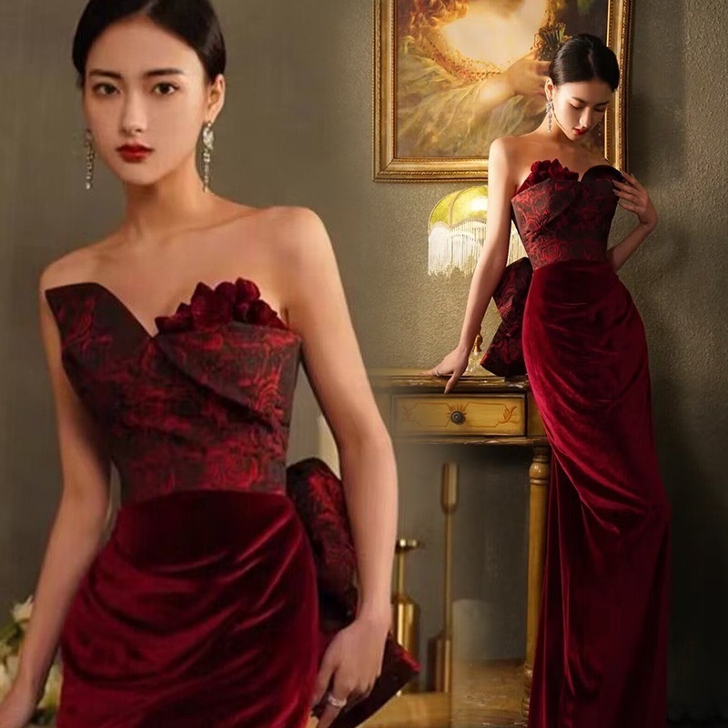 バラ満開の花嫁ガウン婚約乾杯衣装コーラスパフォーマンスウェディングドレスドレス