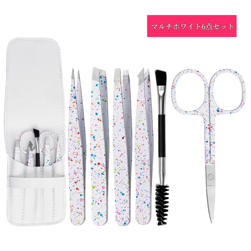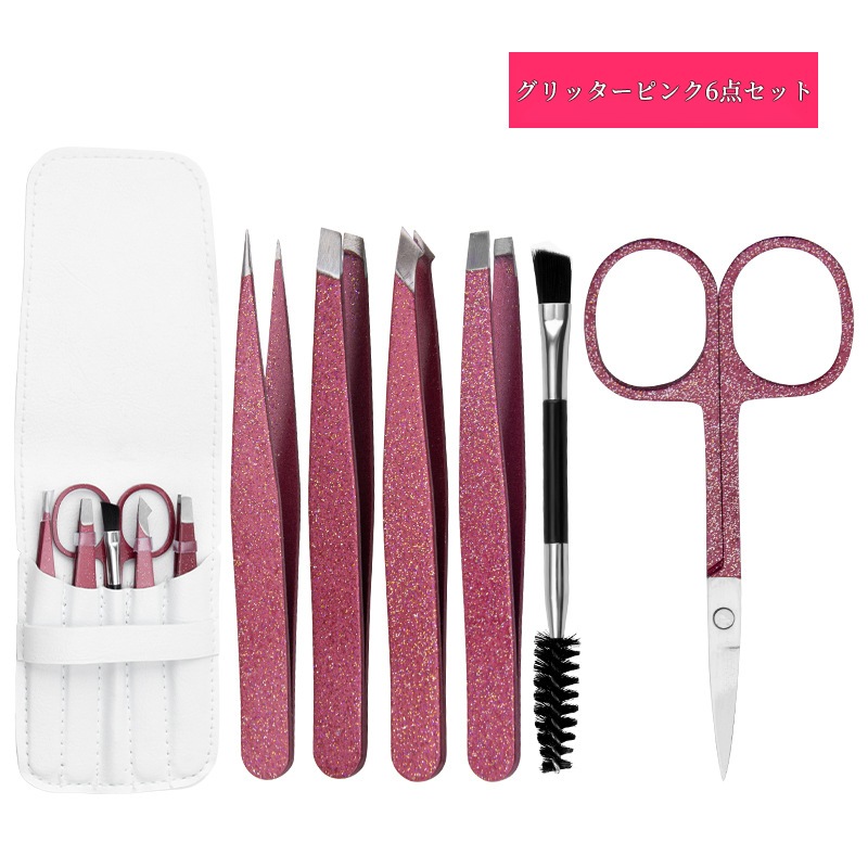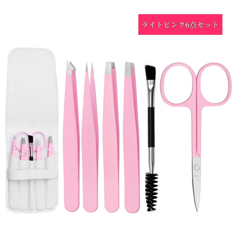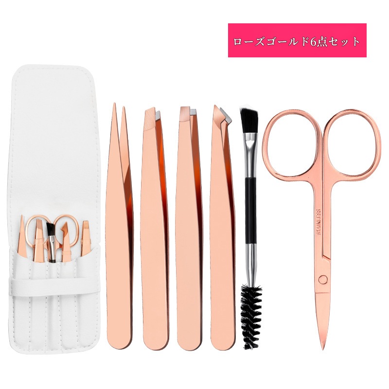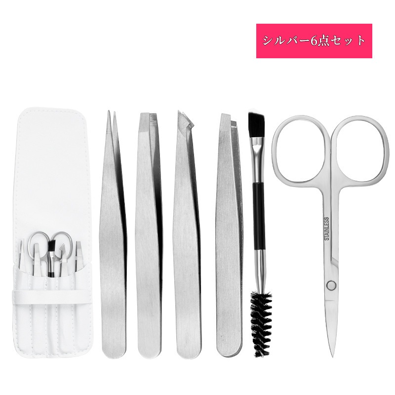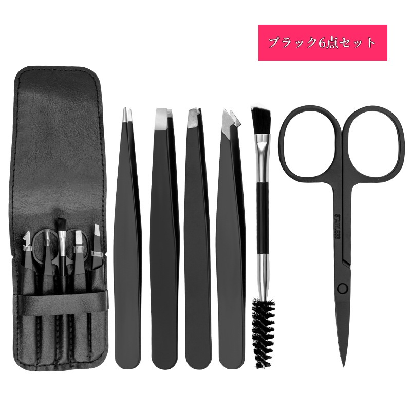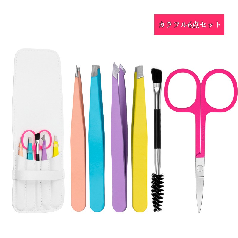 毛抜きセット ツイーザー コスメピンセット先細 先斜め 平先 先細斜め 眉毛はさみ 6本セット アイブローニッパーズ マユハサミ ステンレス製 精密 メンズ レディー アイブローキット PUケース付き