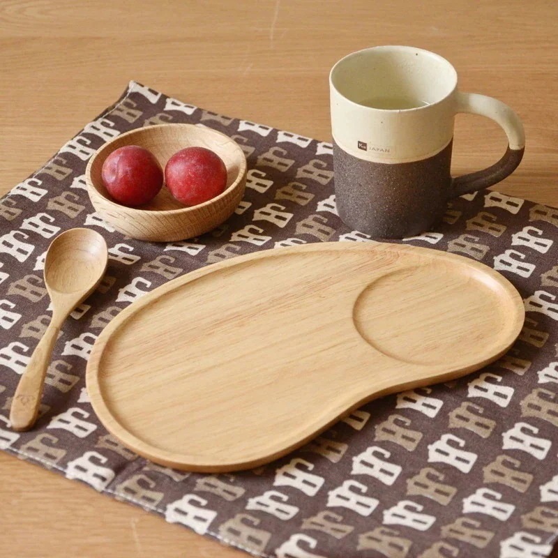 式木製食器トレーオーク皿腰形溝付きトレイ果物皿木製食器556