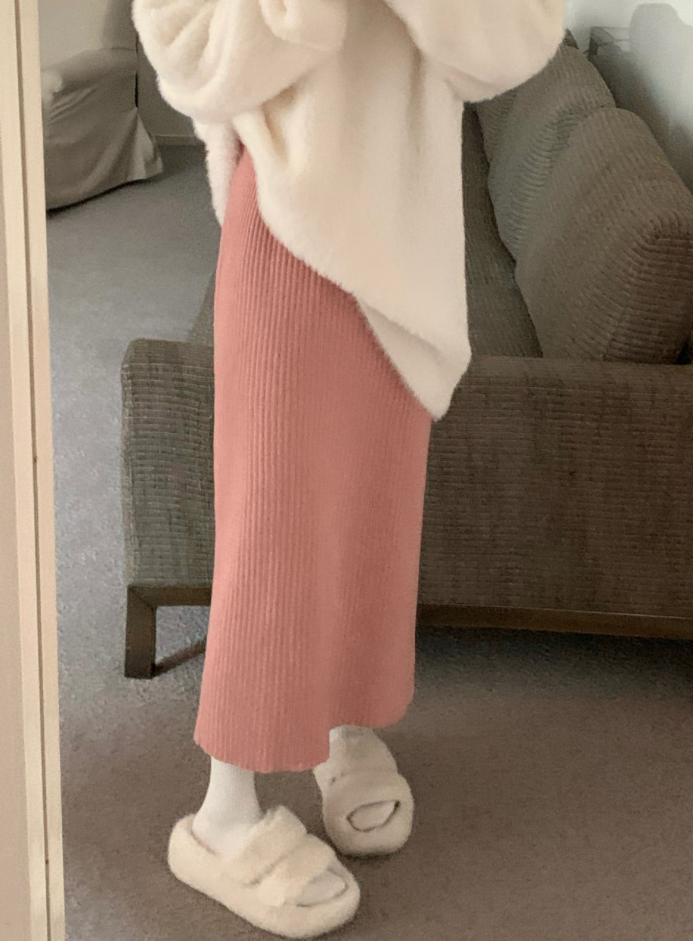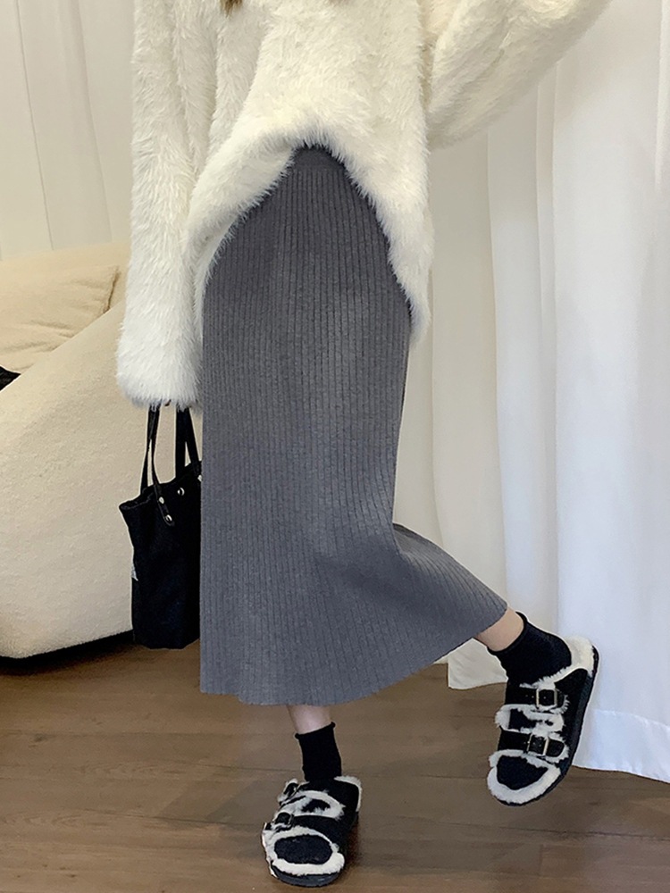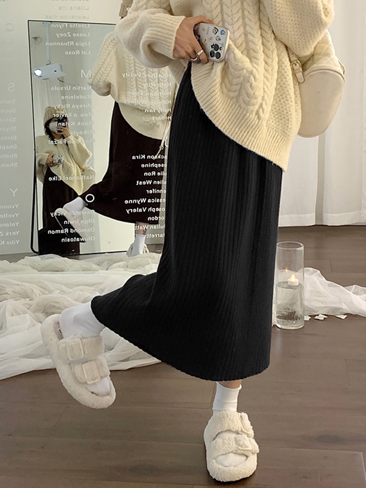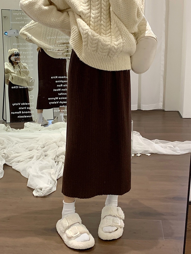 女性のためのスリットなしニットスカート 2025 秋冬ミドル丈ウールスカートルーズ痩身ハイウエストとヒップスカート