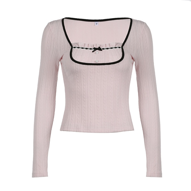 甘いガーリースタイルのリボンステッチフェイクツーピース長袖Tシャツ2025秋アメリカンニットINS新しいトップ