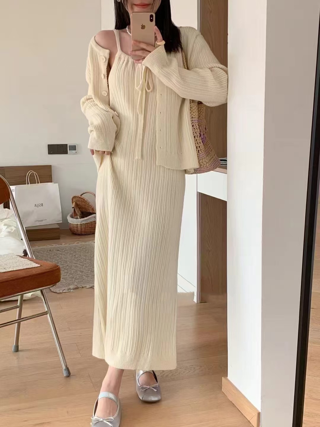 ニットサスペンダードレスセータージャケットツーピースセット2025春の新ソフトとワックスのような気質セータースーツスカート女性のための