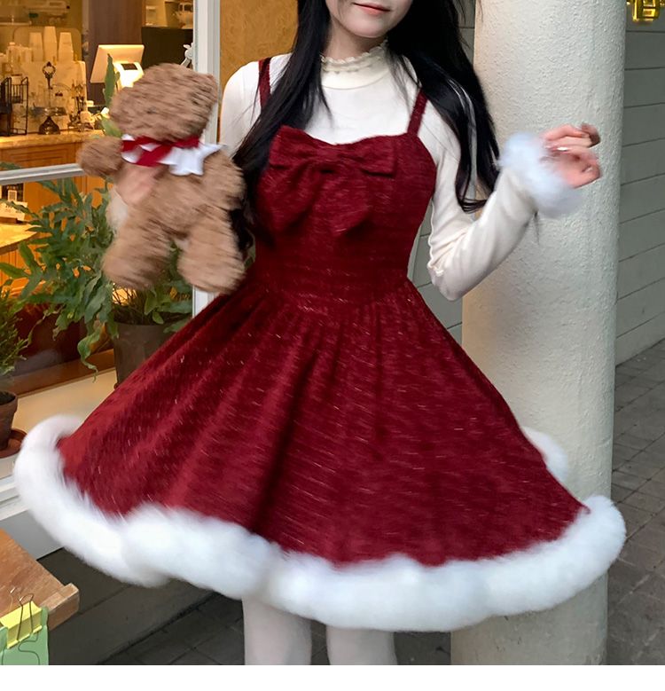 【 3天内迅速な出荷 】サンタ30%までに制限コスプレ 気質 レース ジャケット 蝶ネクタイ ファー パッチワーク ドレス レディース 冬 クリスマス スーツ 韓国