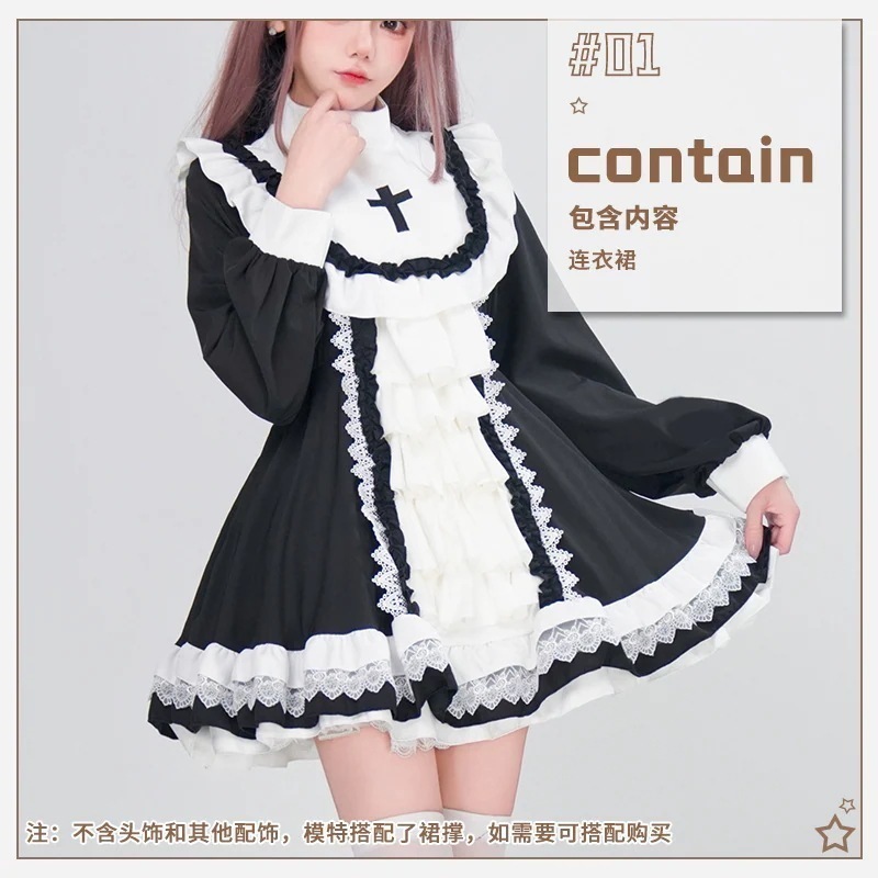 ゴシック風クロスオー バー婦人服ロリータ白黒ワンピースロリータロリータ王女ポンポンスカート ハロウィン コスプレ セットアップ 制服 レディース ポリス メイド服 コスプレ ハロ