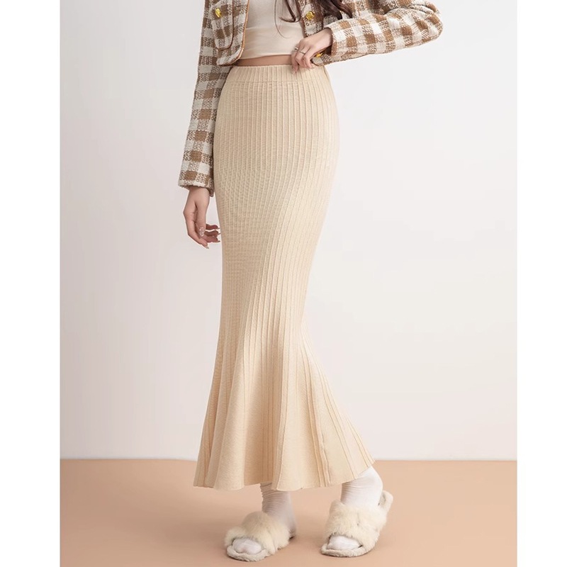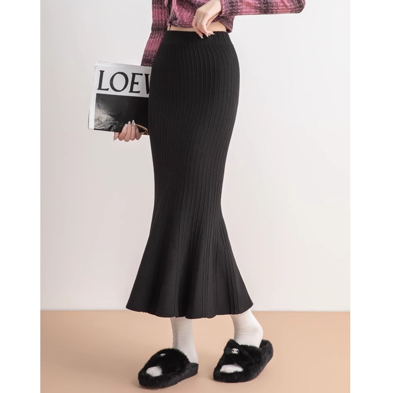 韓国ファッションミディアムスカート 2Color選べま フェミニンラインで上品なニットタイトスカート/ニット生地/だから履きやすい/秋/冬/春使用 ニットスカート