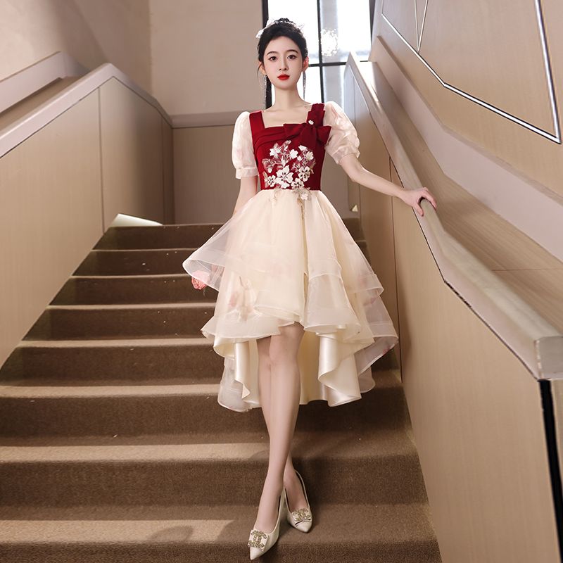 ウェアブライダル2025夏レッドバンケット小さな婚約結婚式のドレススカート女性用