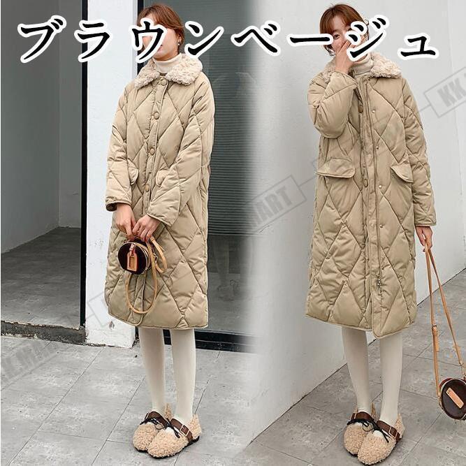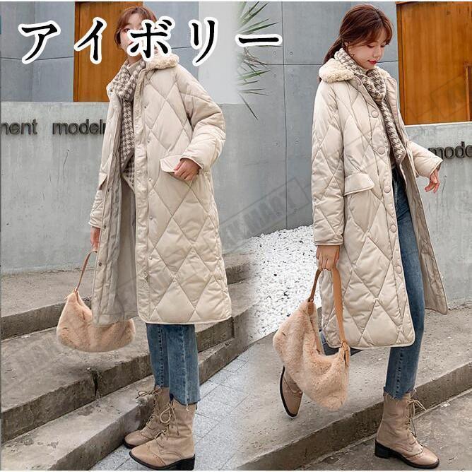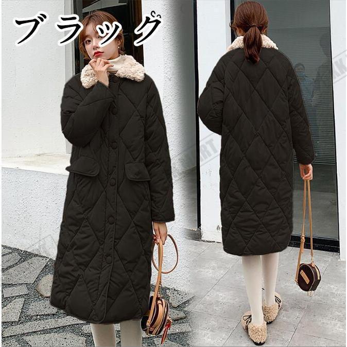 中綿コート キルティングコート レディース ロングコート アウター 冬 防寒 ファーカラー ダウンコート 無地 長袖 防寒コート 黒