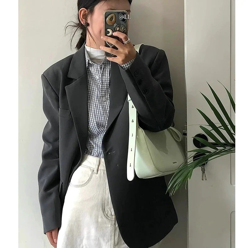 春秋 スーツ アウター グレー スーツアウター 新作 韓国ファッション ゆったり カジュアル ジャケットスーツ レディース